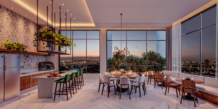 "A organicidade das linhas presentes na natureza se entrelaçam com os rígidos ângulos reto presentes na belíssima arquitetura do empreendimento, caracterizando uma linguagem intrínseca de projeto e trazendo um conceito nobre e sofisticado."